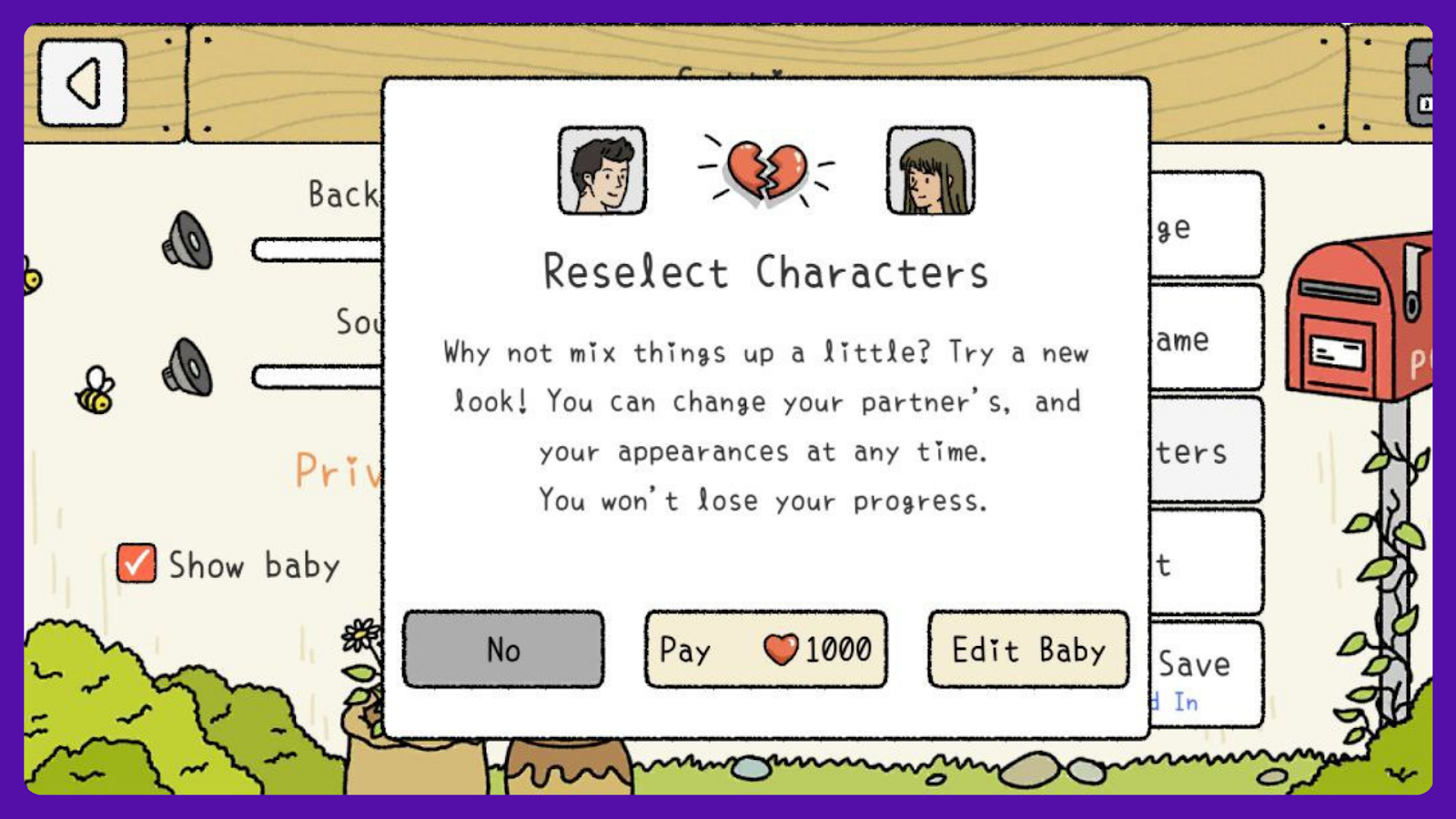 You can do this by going to settings and tapping on the “Characters” button. You will need Love to do this.