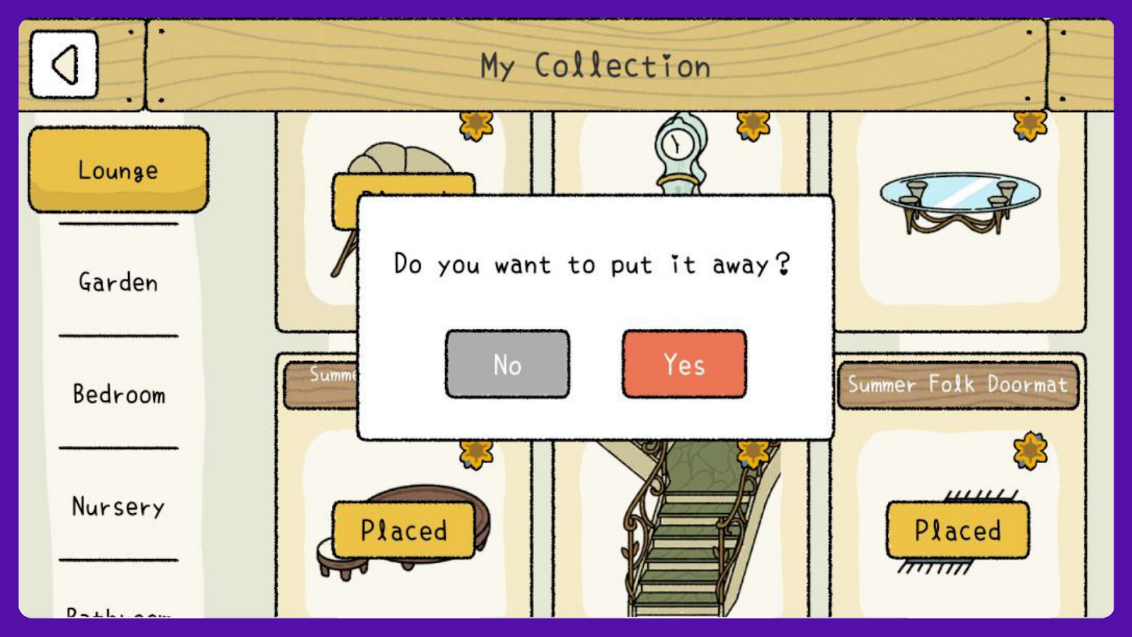 You can remove items by tapping on them, a pop-up will show up "Do you want to put it away?" Select "Yes" to remove it and "No" to continue using the item. The items you don't use will remain available in your Collection.