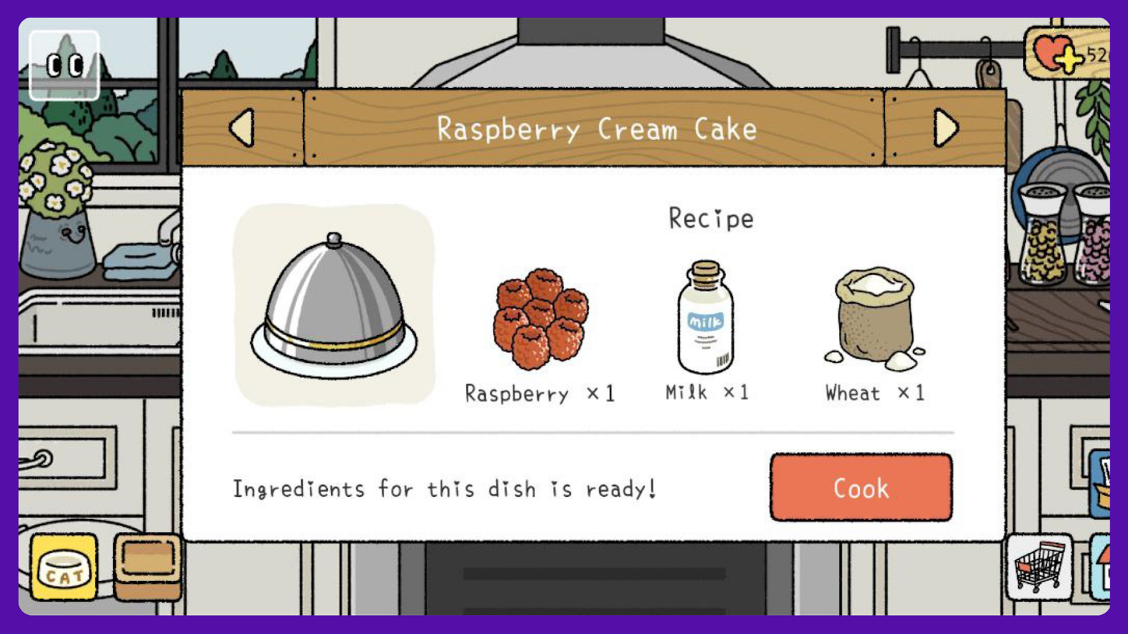 You will be able to see the recipes available by clicking on the different appliances in this room. Purchase ingredients from the store or grow your own on the farm to unlock and cook new dishes.