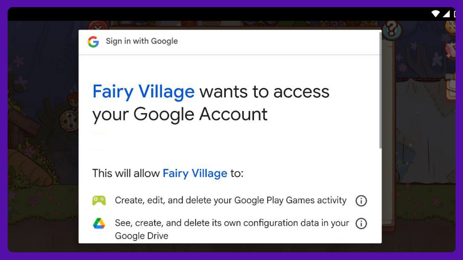 - If it is your first time playing or updating the game to version 1.4.2 or higher, you will be asked to sign in with your Google Play Games account and give permission to access your Google Account in the loading screen: