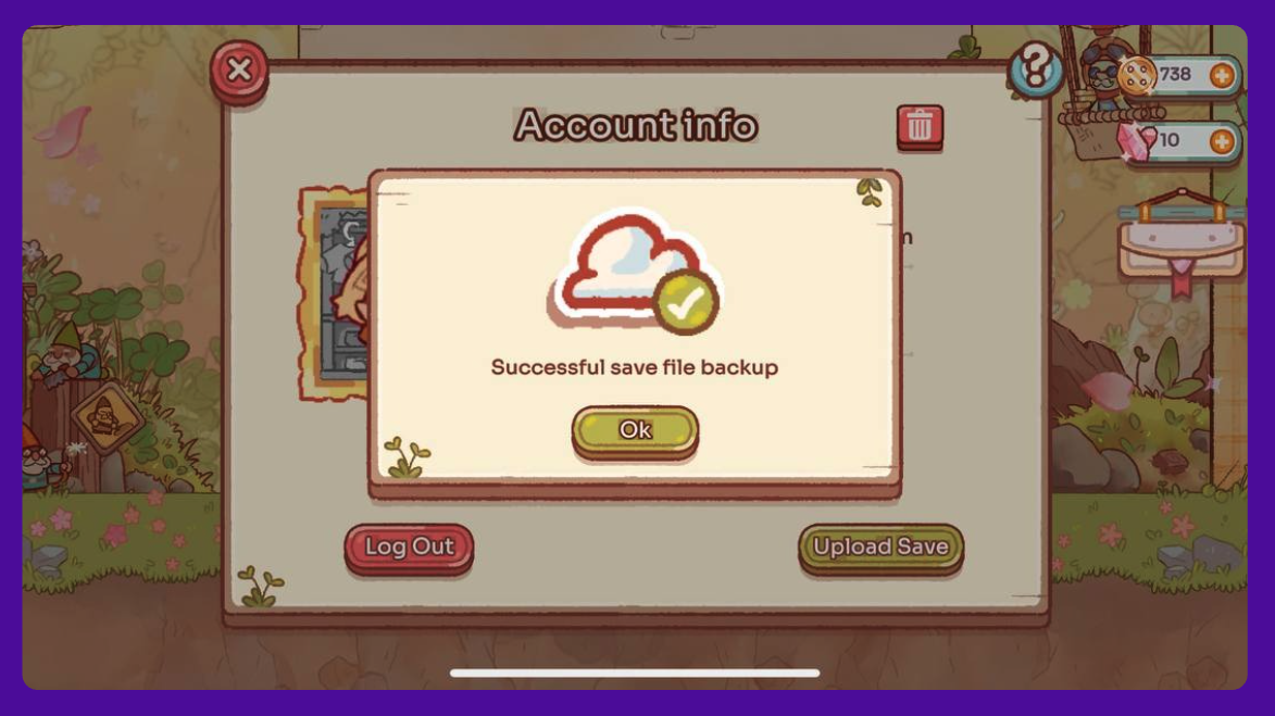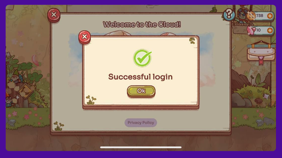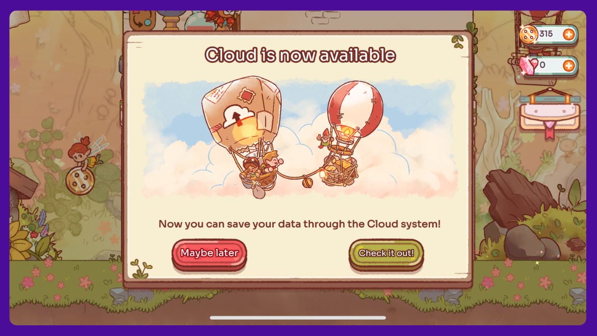 - If it is your first time playing or updating the game to version 1.4.2 or higher, you will see a pop-up box regarding cloud save, tap Check it out! To start saving your progress.