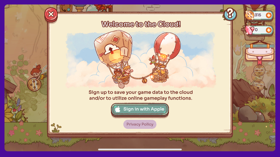 - Tap Sign in with Apple to allow access to your Apple ID and save your progress in the cloud. You will see a confirmation screen once you correctly login to your Apple ID.
