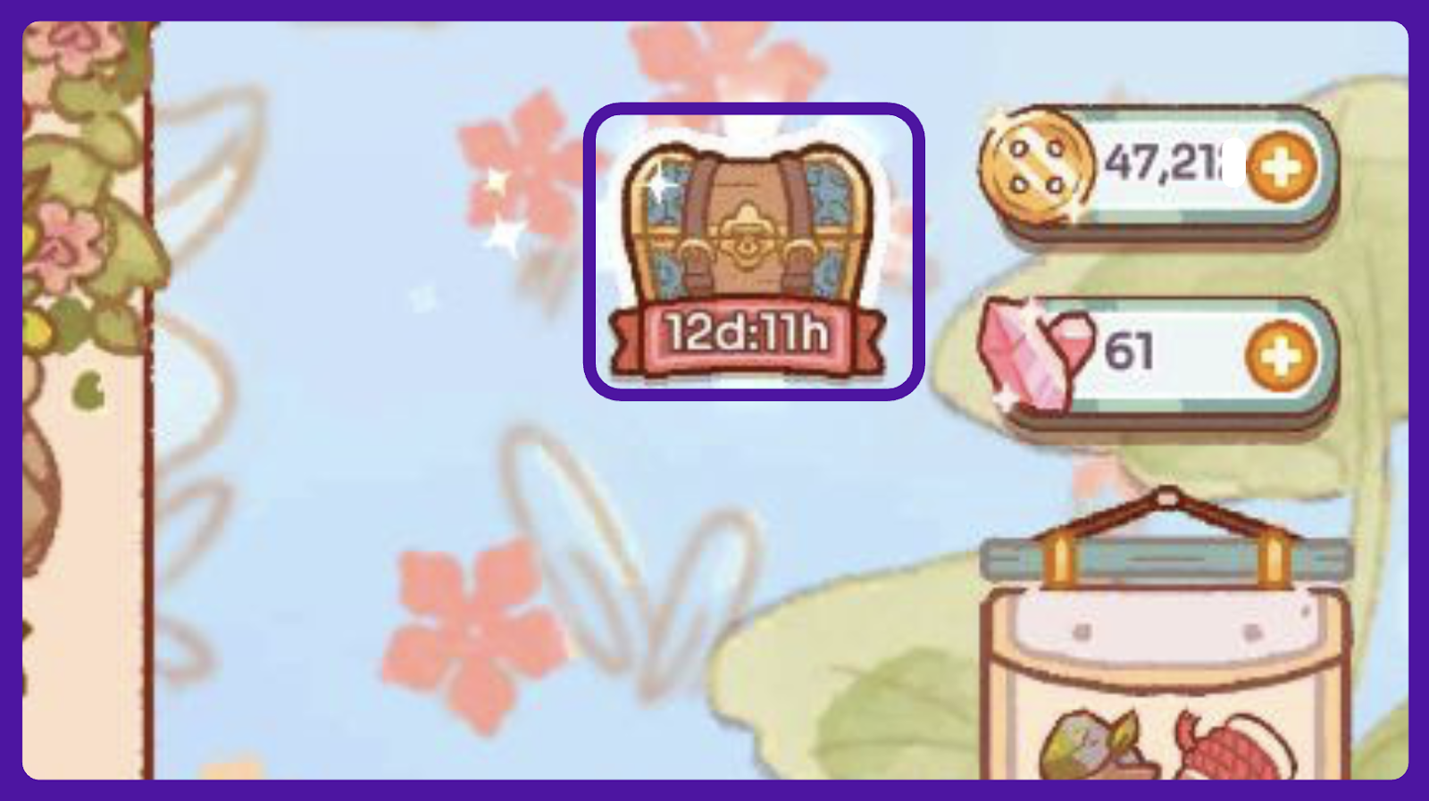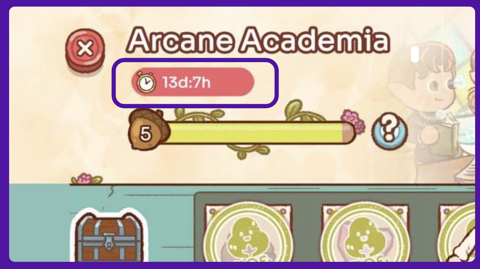 Find the chest next to your currency count to see your current Acorn level and the available rewards.