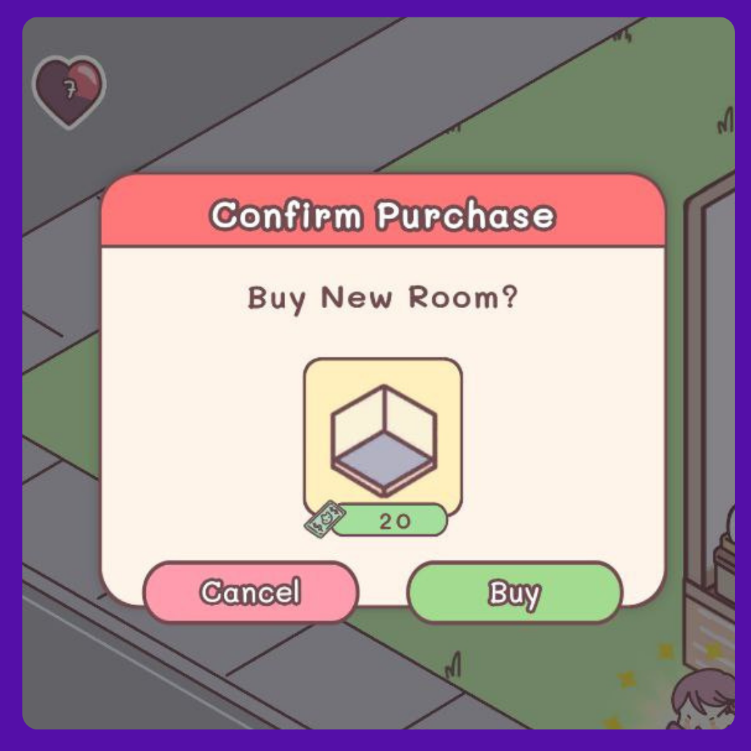 Just tap the red sign or Jane and confirm that you want to build extra space in your home.