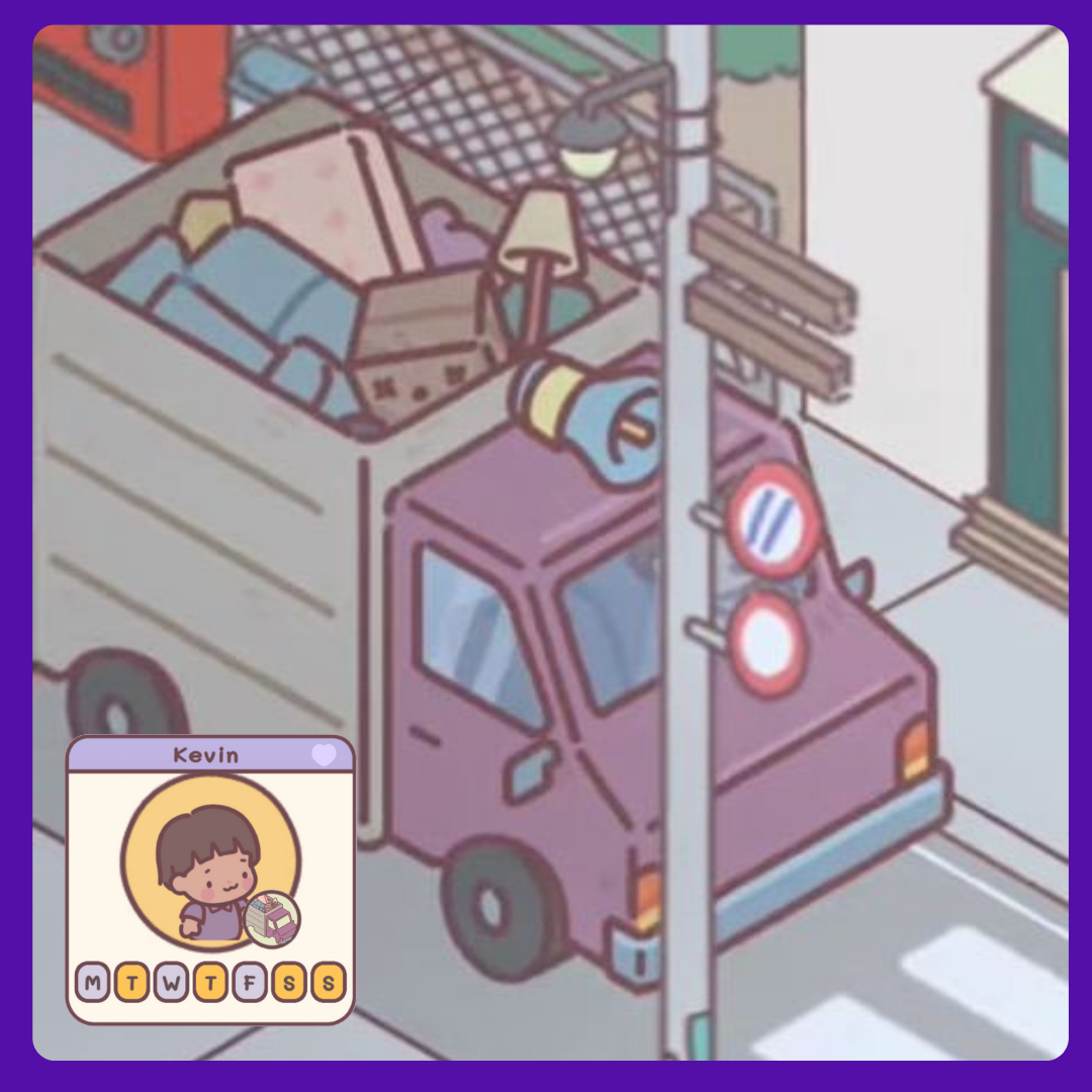 Stay alert if a truck is outside your house! That might be Kevin ready to buy you some furniture. You can check the days he comes around the neighborhood in your Address Book.