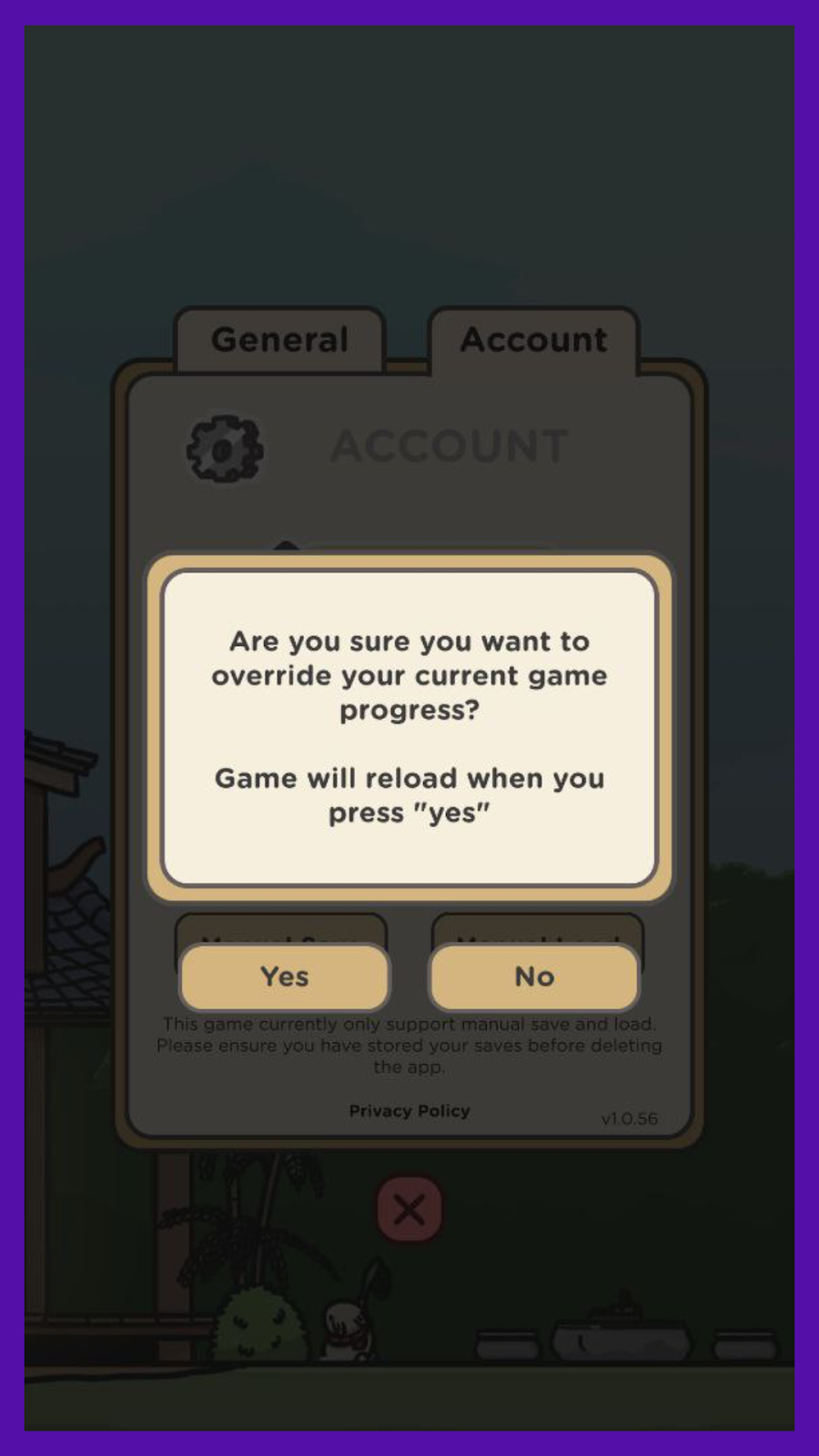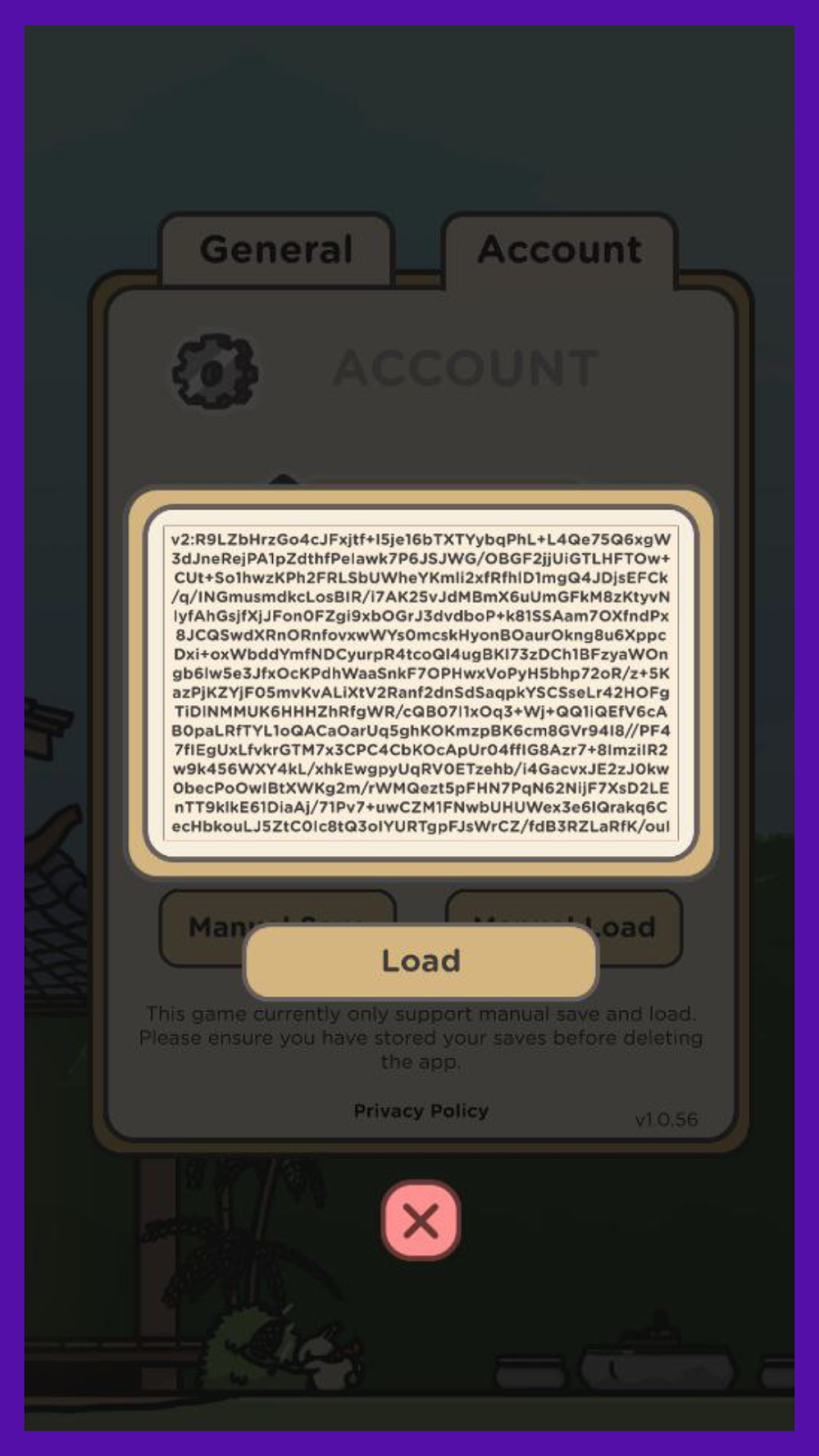 - Download the game on your new device and follow the same steps but this time tap on Manual Load