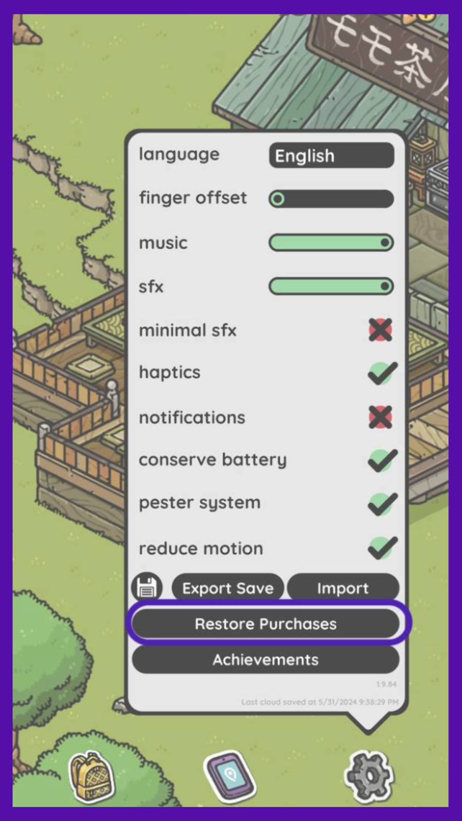 There's two ways to restore your progress in Tsuki’s Odyssey. The first is with your SAVE file, uploading it manually in Settings. If you don't have access to the file, you can restore it with your Apple ID or Play Games account. Make sure you are using the same email address to restore it.